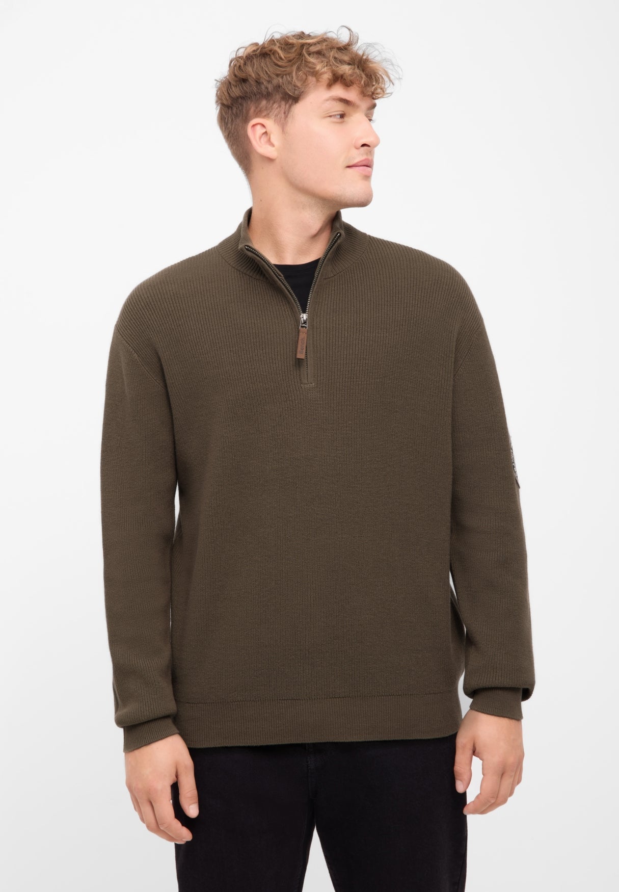 Kombiniere den Sweater mit einem Basic Shirt zu einer Jeans oder einer Chino Hose.