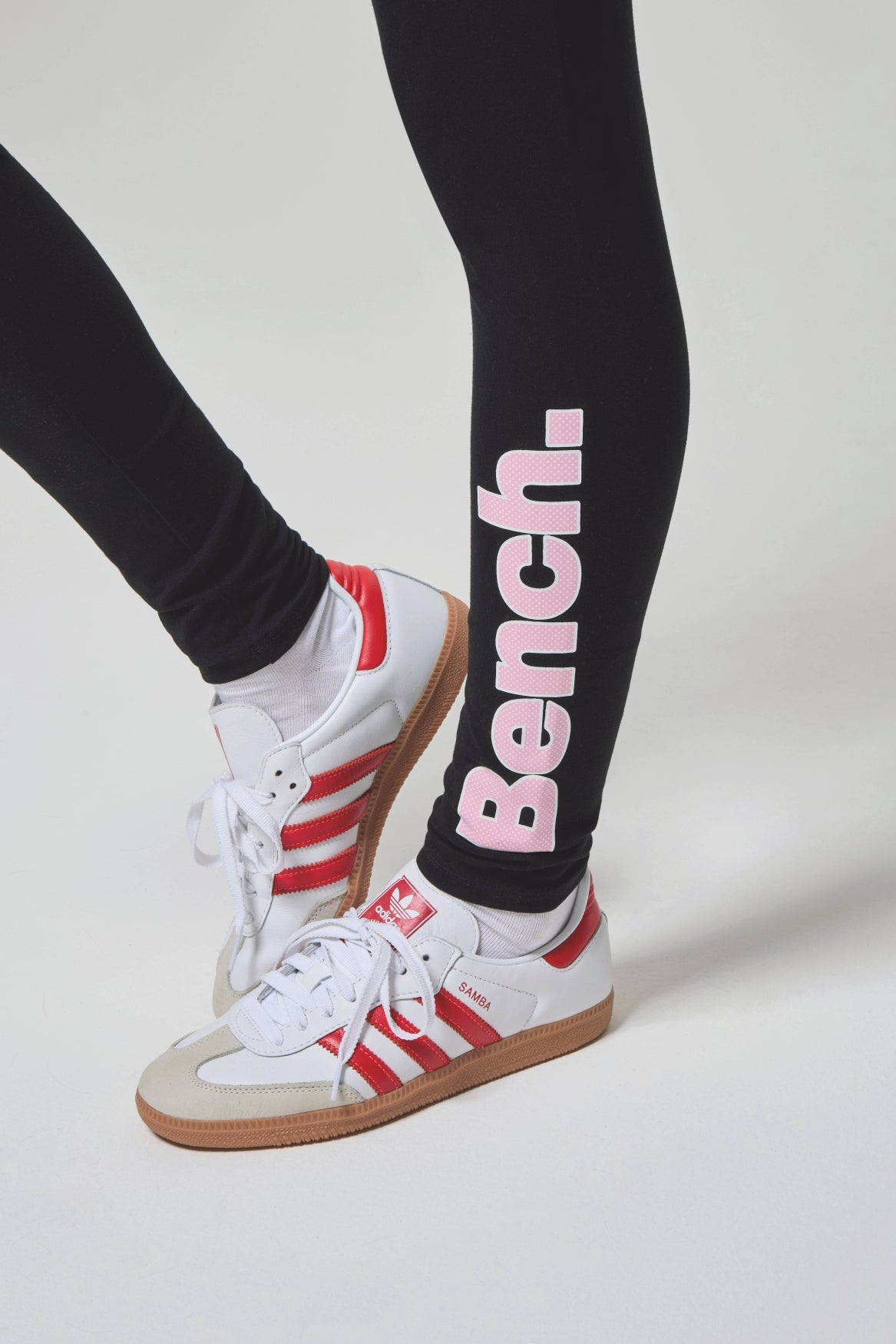 Unsere Basic Leggins! Perfekt für ins Fitnessstudio, entspannte Tage zu Hause oder einen lässigen Stadtbummel. Die modischen Farben und der Bench Print am Bein machen sie zu einem Must-Have in jeder Garderobe.