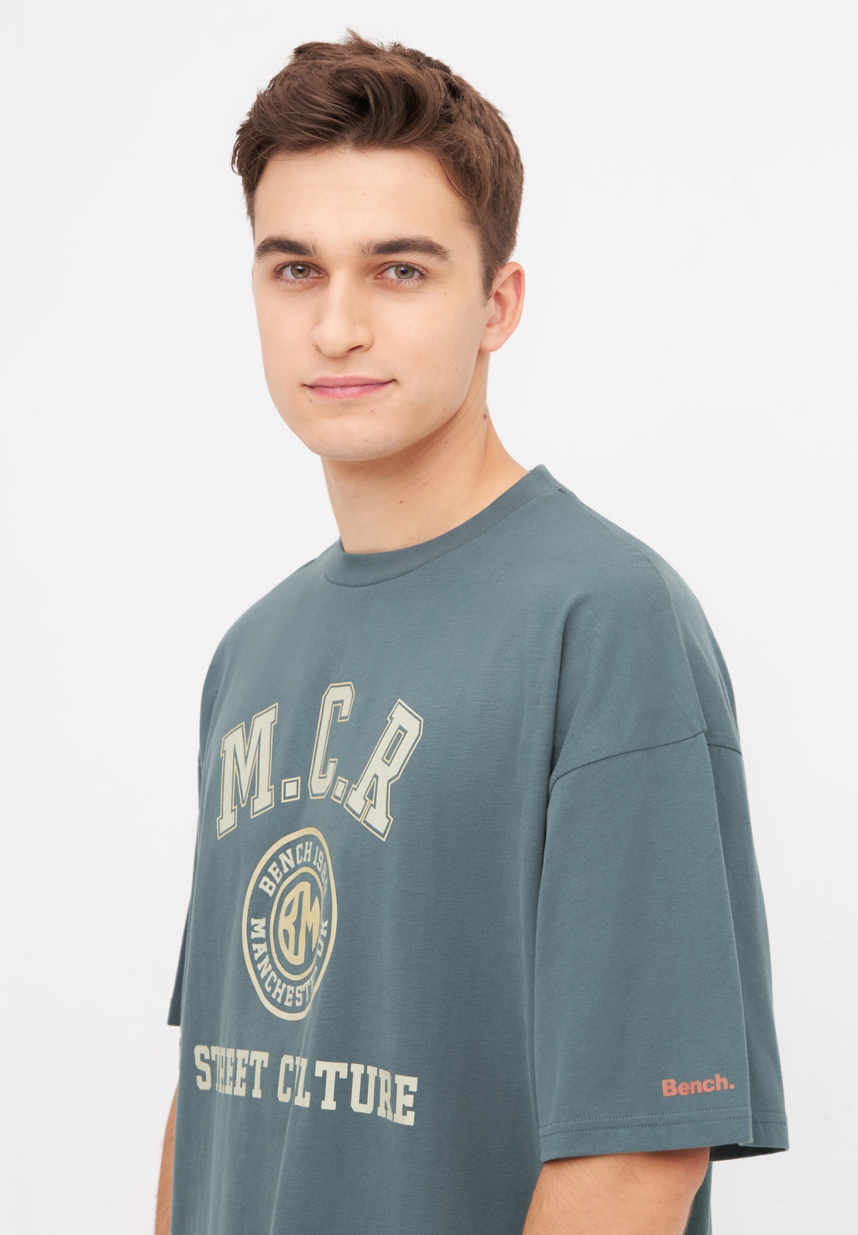 Das Bench Herren T-Shirt ist dein neues Must-have für den Kleiderschrank. Das T-Shirt bietet dir eine angenehme Passform, wobei das hochwertige Material ein schönes Tragegefühl hinterlässt. Der Schriftzug und der passende Bench Patch verleihen dem eher schlichten T-Shirt ein gewisses Extra, wozu du es zu fast allem kombinieren kannst. Ein kleines Highlight ist das ikonische Bench Logo am Oberarm.