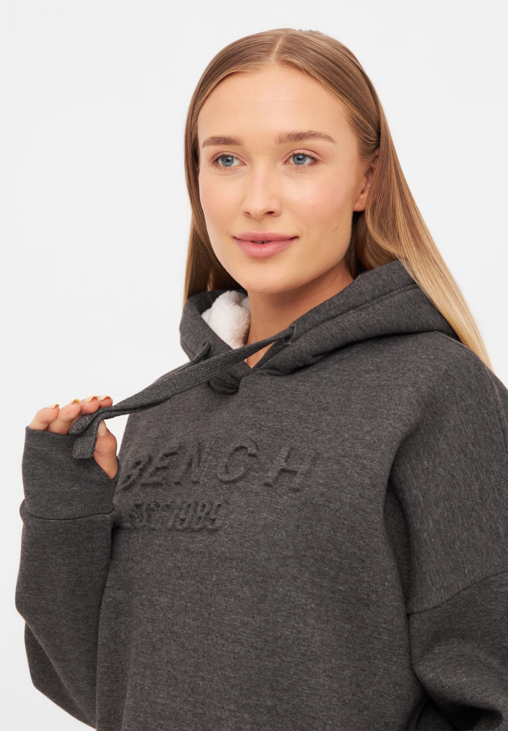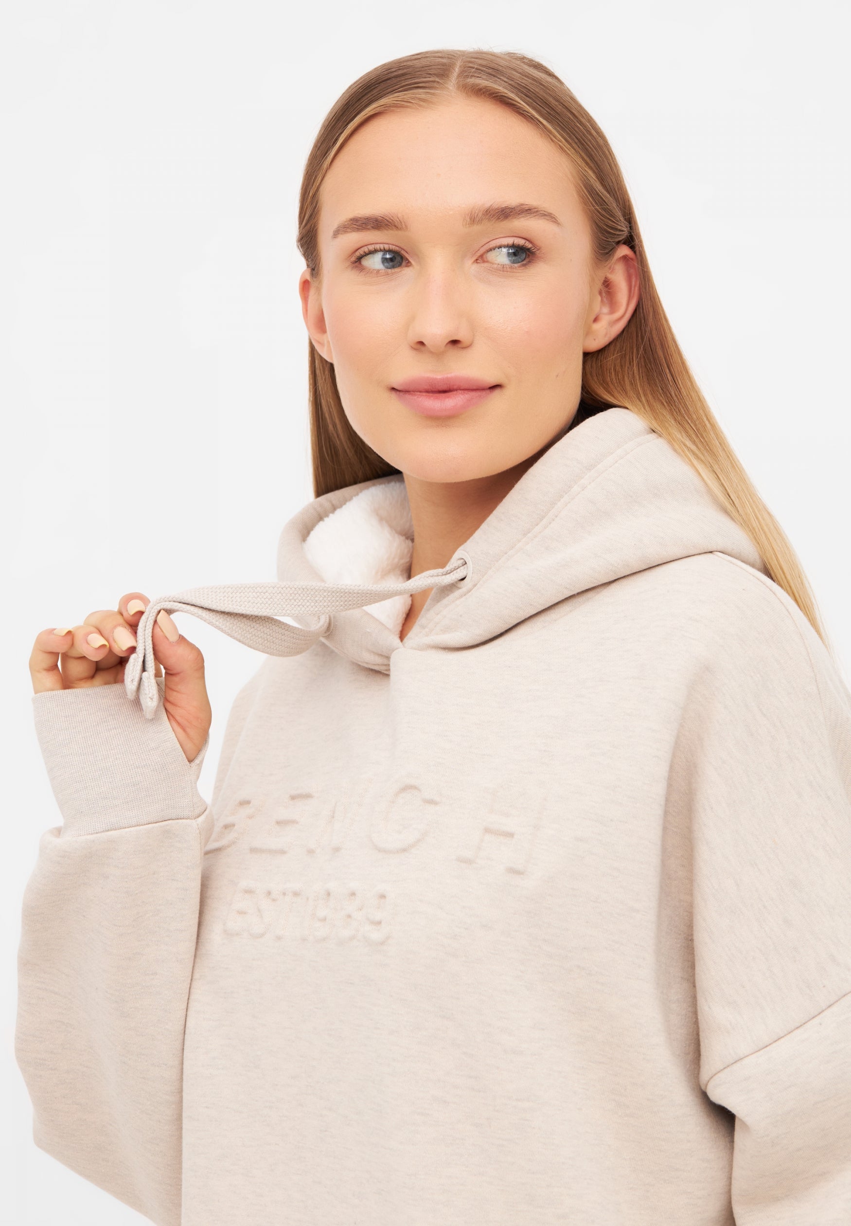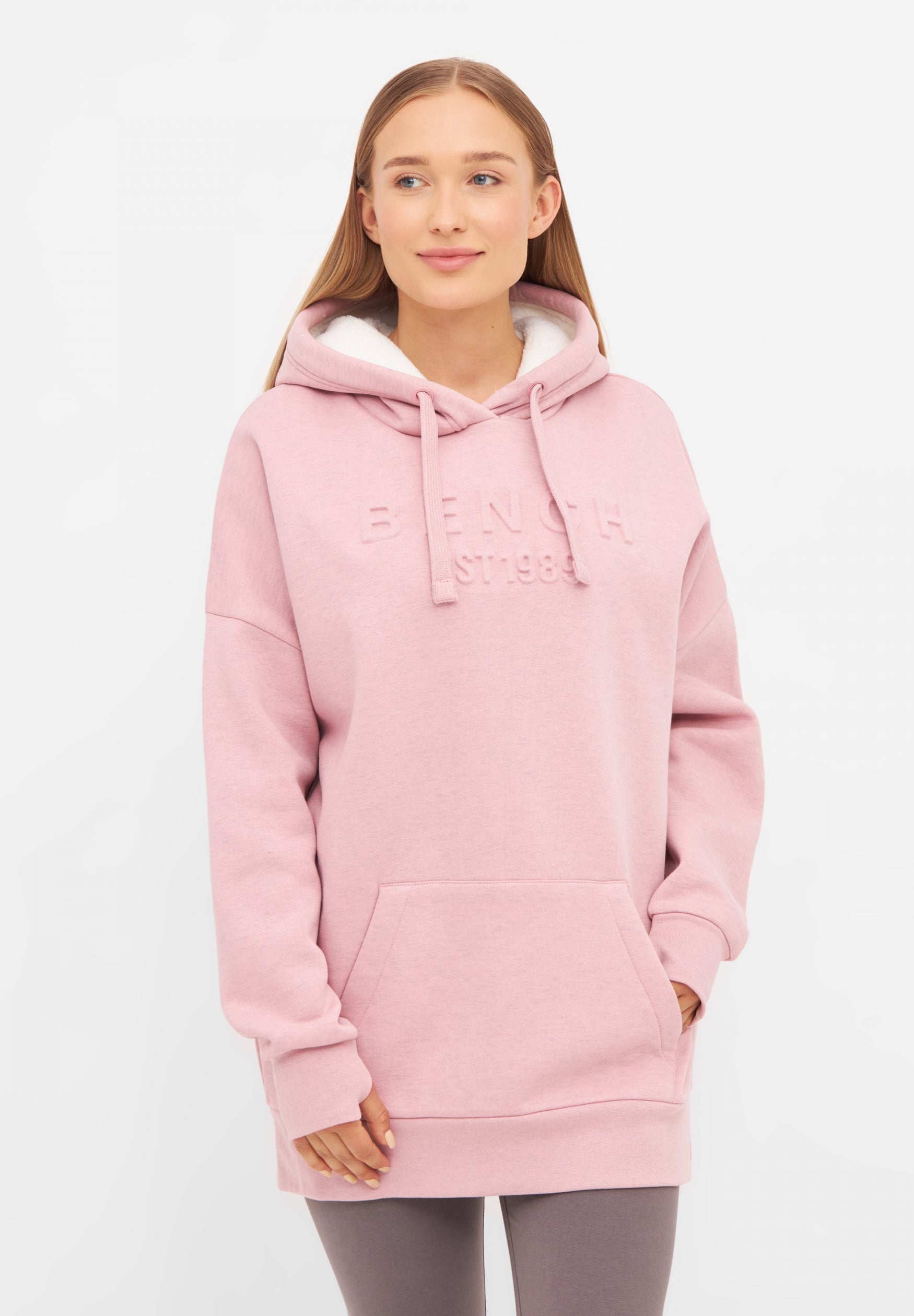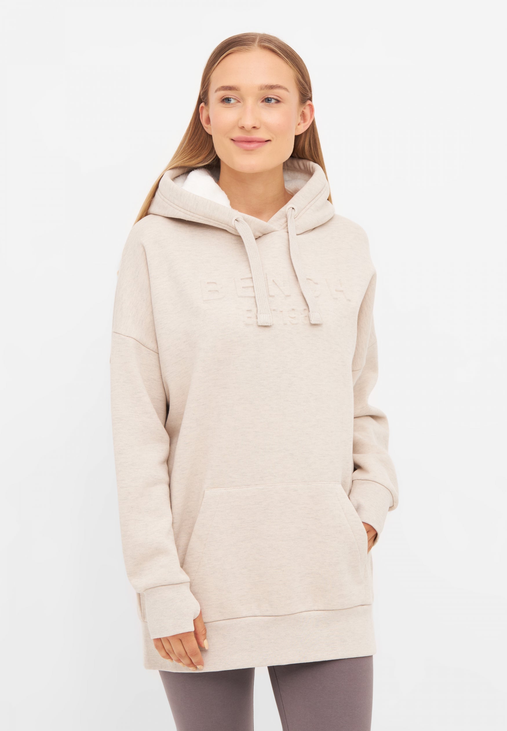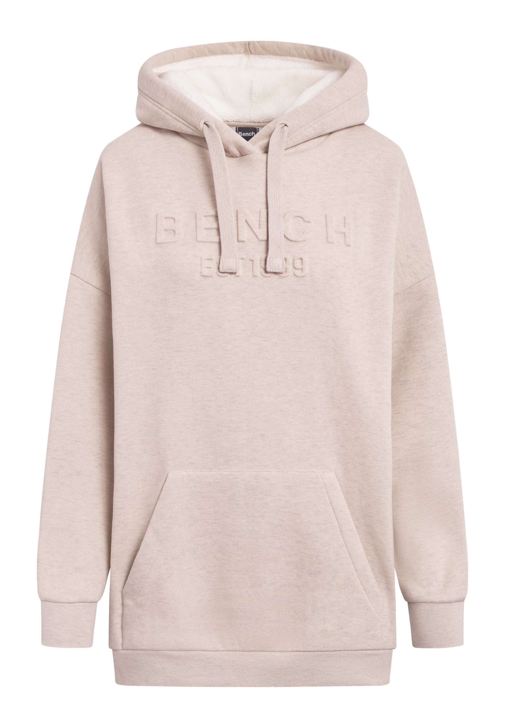 Dieser lang geschnittene Damen-Hoodie von Bench vereint Komfort und Stil auf einzigartige Weise. Mit den ikonischen Bench-Daumenlöchern bietet er nicht nur zusätzliche Wärme, sondern auch den markentypischen Look. Der lockere Schnitt sorgt für maximale Bewegungsfreiheit und ein entspanntes Tragegefühl, während das dezente Ton-in-Ton Bench-Logo auf der Vorderseite einen subtilen, modernen Akzent setzt. Ideal für lässige Outfits – dieser Hoodie ist das perfekte Alltagsstück für alle, die Wert auf Stil und Bequemlichkeit legen.