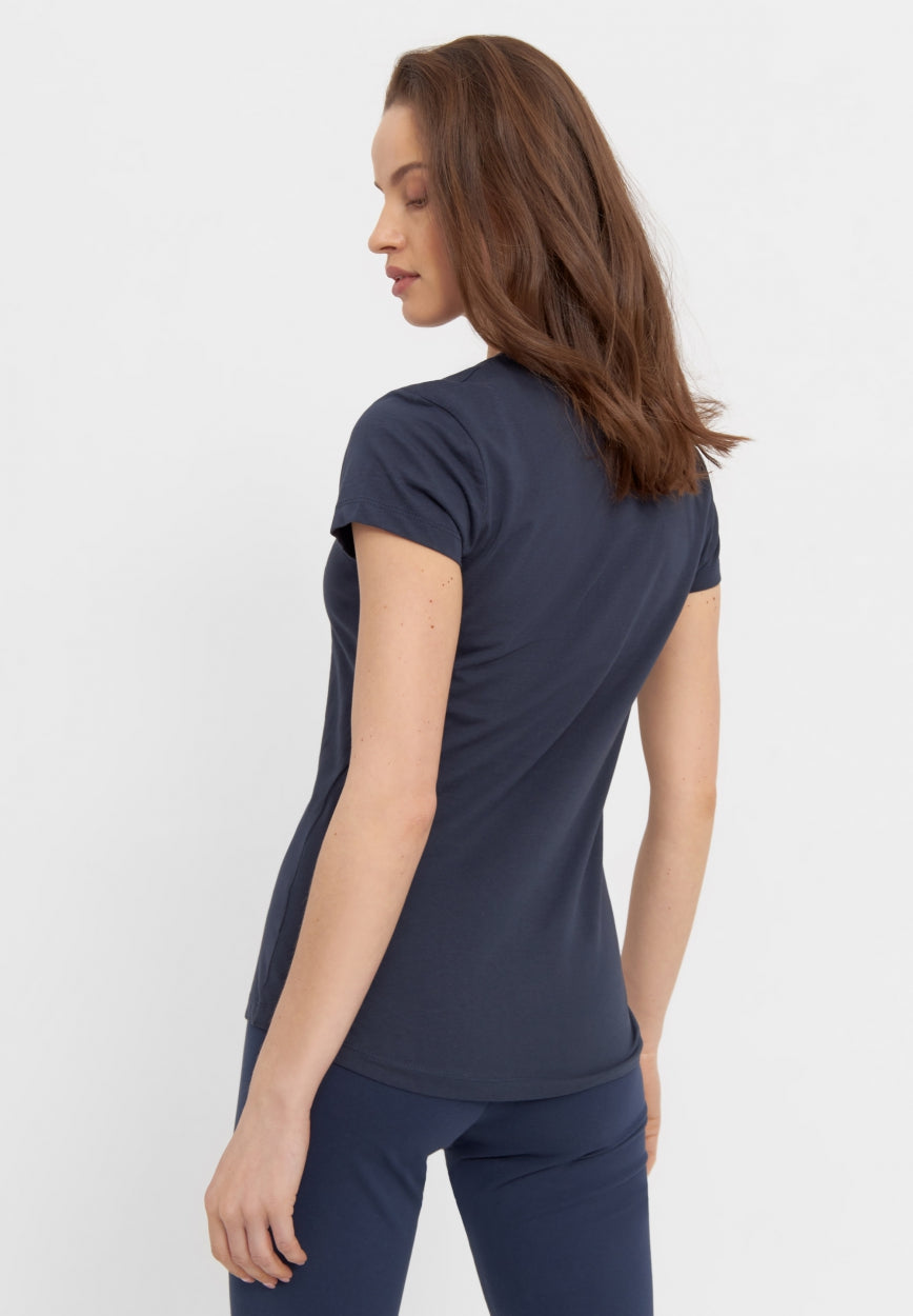 Unser Model ist 175 cm groß und trägt Größe 38 (S).