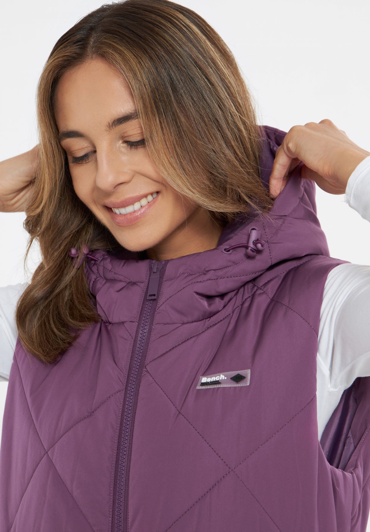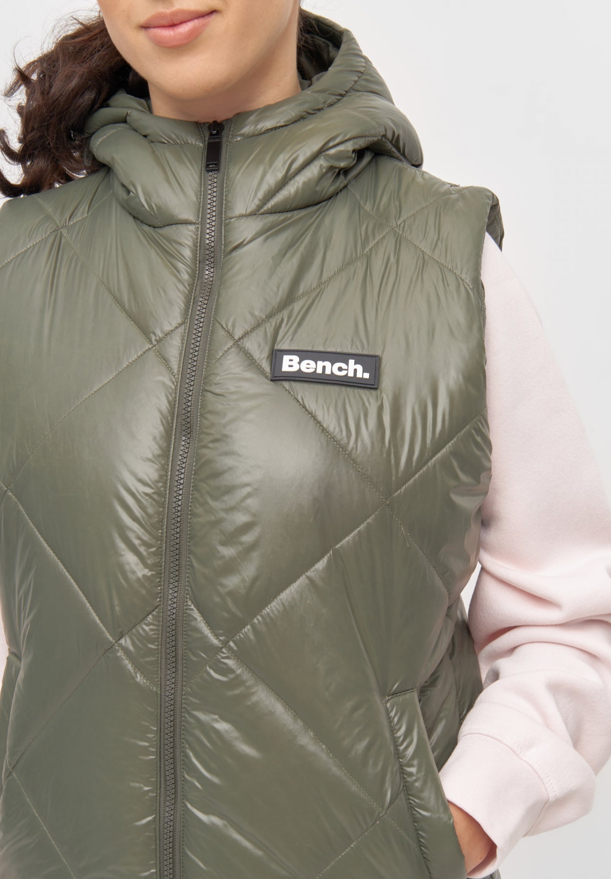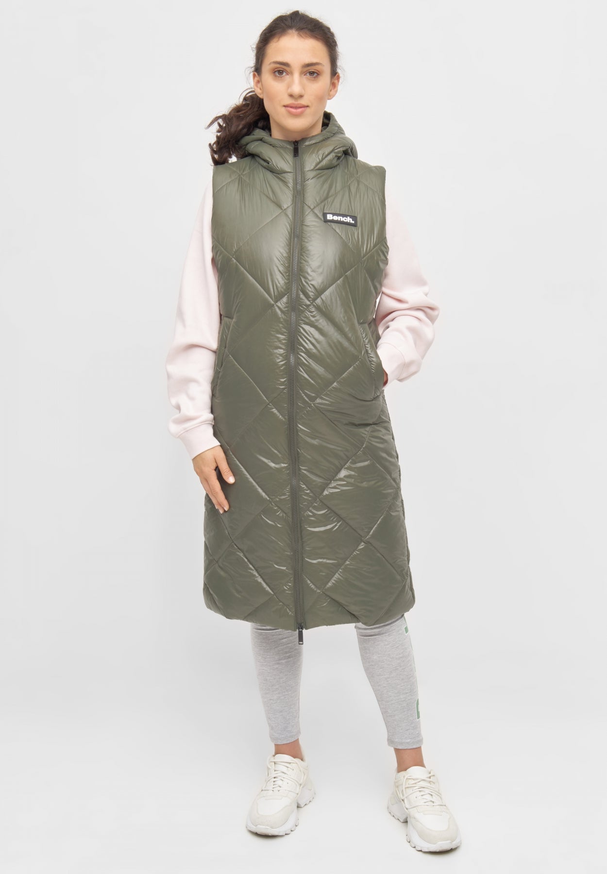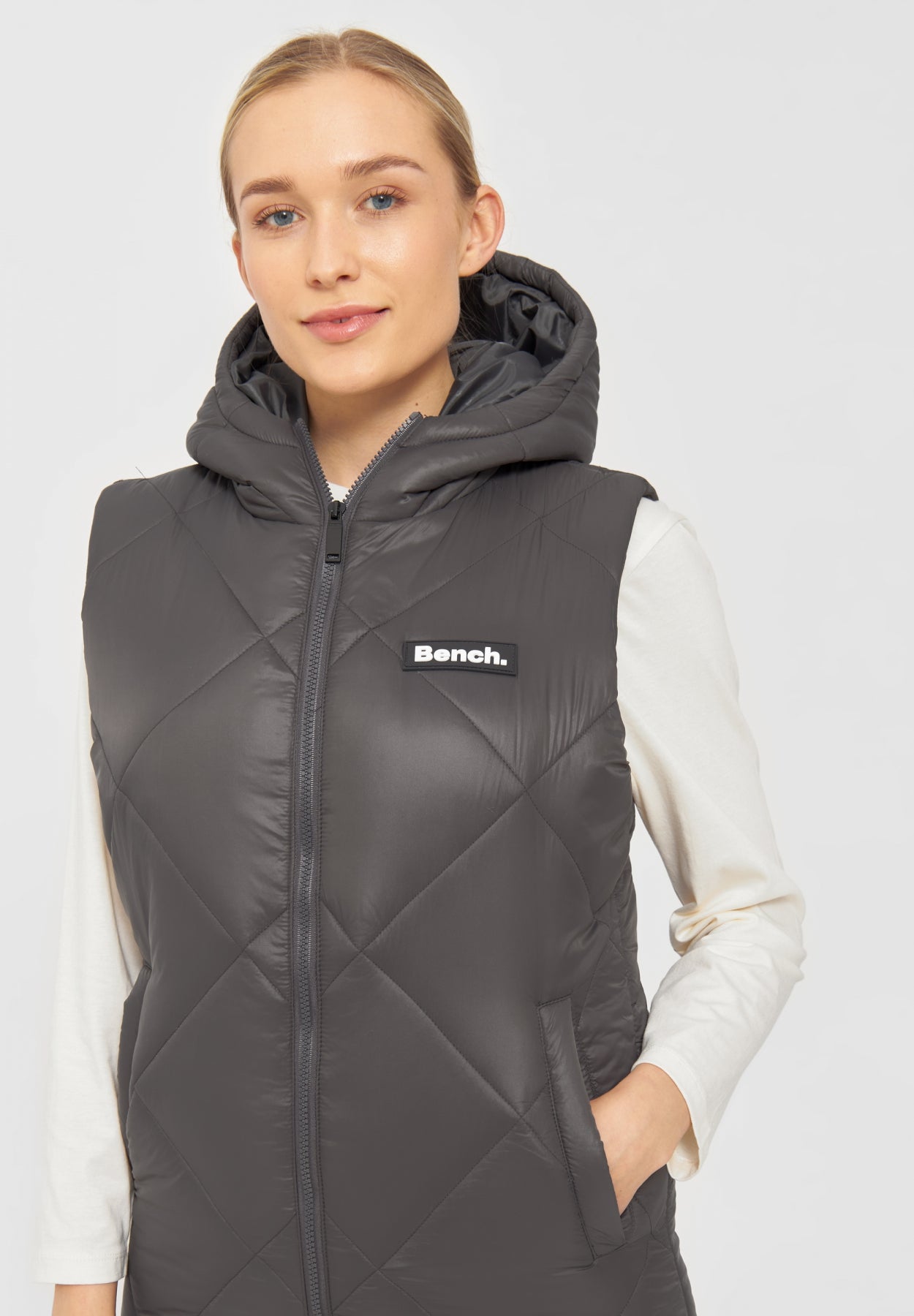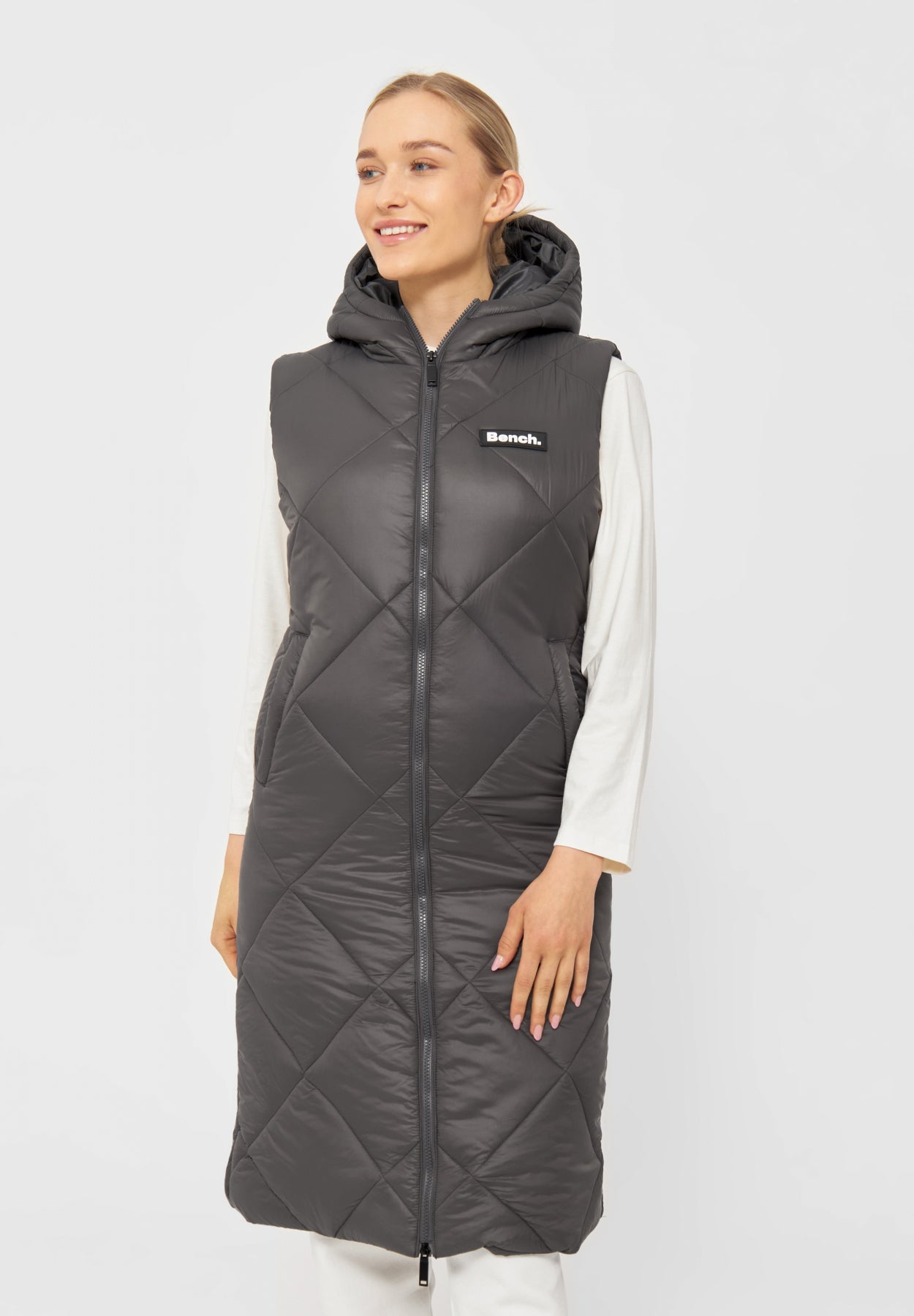 Die Bench Damen Steppweste mit Kapuze ist das perfekte Fashionstatement für jede modebewusste Frau! Die lange Passform sorgt für einen trendigen Look und hält dabei auch noch angenehm warm. Die hochwertige Verarbeitung und das moderne Design machen diese Weste zum absoluten Must-Have für die kommende Saison.
