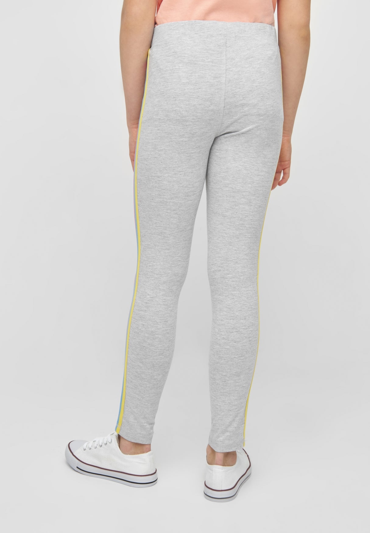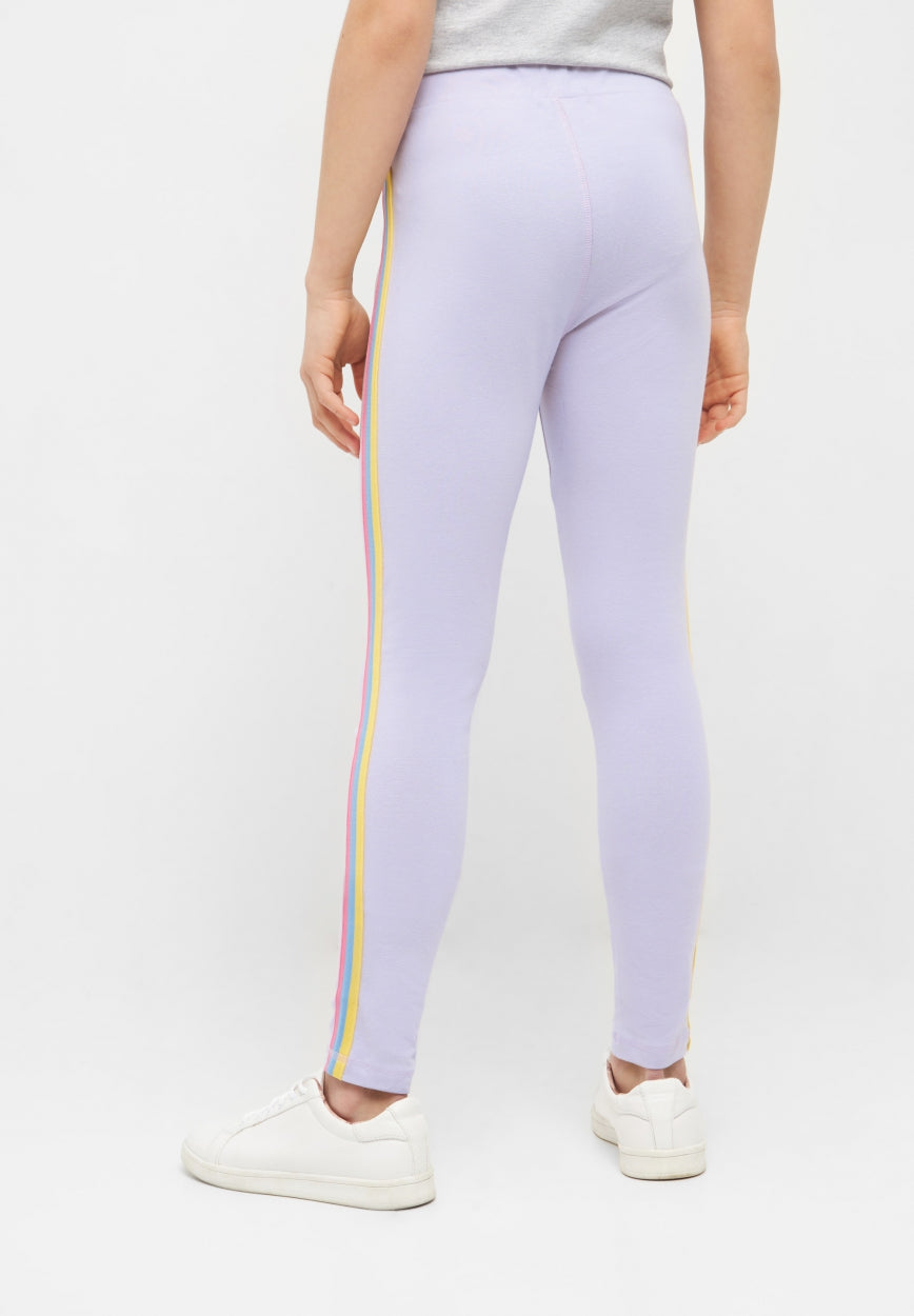 Diese bequeme Mädchen Leggings kombiniert sportlichen Stil mit farbenfrohen Details. Das weiche, elastische Material sorgt für angenehmen Tragekomfort und optimale Bewegungsfreiheit, ideal für Schule, Freizeit oder Sport. Die bunten, dezenten Streifen an der Seite verleihen der Leggings einen modernen und stylischen Look.